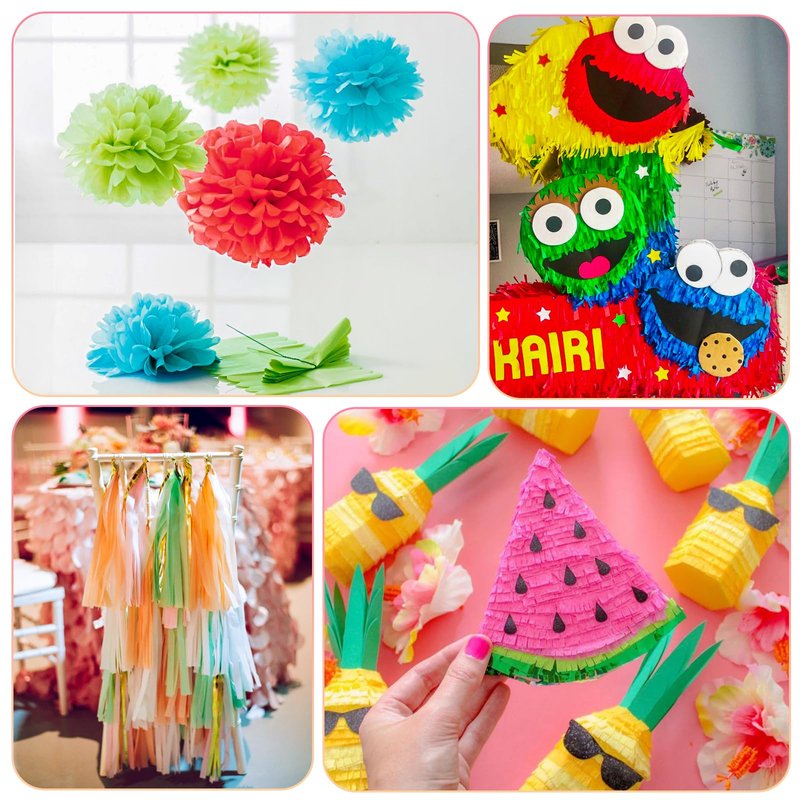 - "Attention: Avoid over stretching, you can make paper tissue flowers, paper pompoms or tear them into pieces as party confetti to party favors create pom-poms, paper flowers paper fruit, accessories for kids, pencil holder decoration, decorate your walls, decoration for events, photo booths, backdrops, and party tables. daily decorations at home, in bars, clubs, restaurants, and classrooms, to any space.making it suitable for gift wrapping or as party streamers.