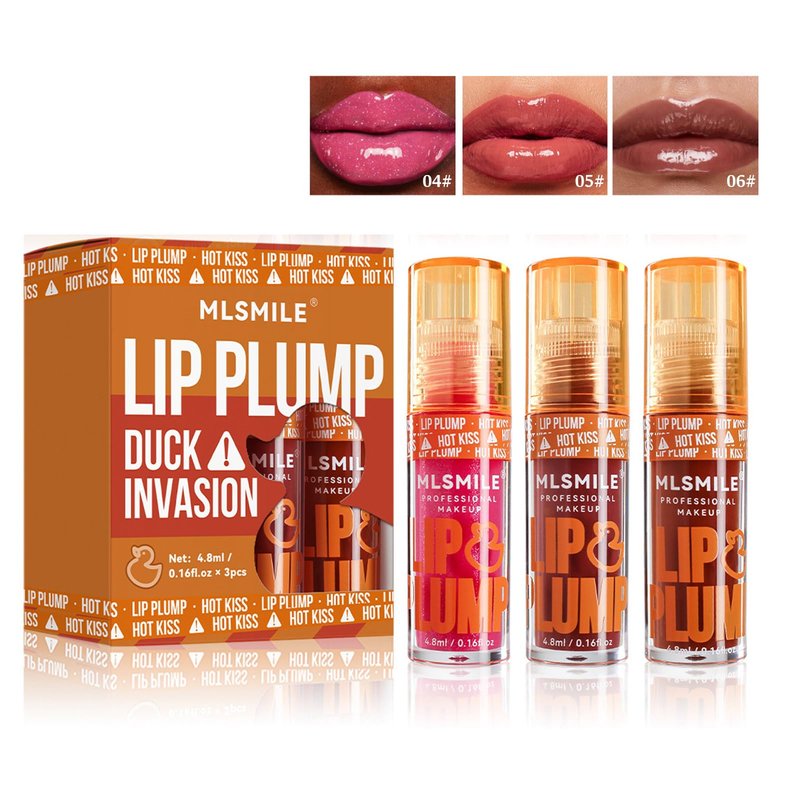 3 Colors Lip Plumping Booster, Lip Plumper Gloss, Duck Plump High Pigment Plumping Lip Gloss with Spicy Ginger, Vegan Lip Makeup, 4.8ml Each