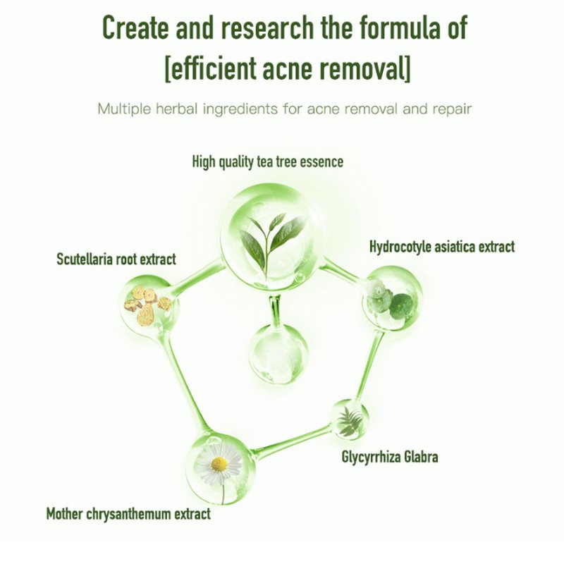 - 【Natural Ingredients】 Multiple herbal ingredients for acne removal and repair: High quality tea tree essence, Scutellaria root extract, Hydrocotyle asiatica extract, Mother chrysanthemum extract and Glycyrrhiza glabra.Tea Tree Oil has demonstrated to be effective in the treatment of mild to moderate acne, with fewer side effects.