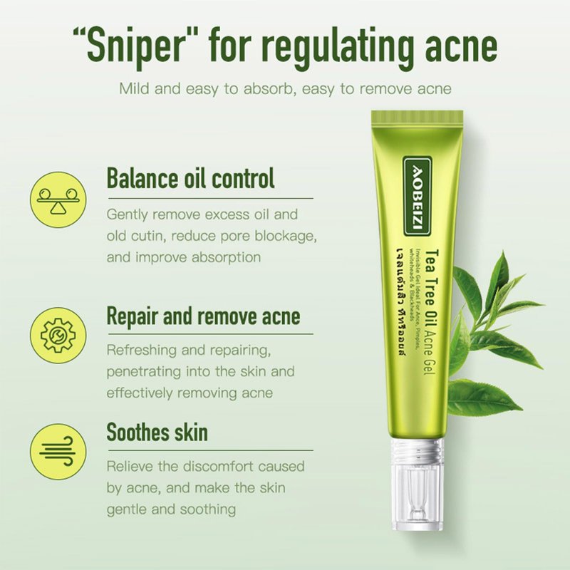 - 【Effectively Eliminate Acne】 Tea Tree Oil Acne Gel is design for acne prone and problem skin penetrates into the skin and helps to dry out acne and pimples. Ideal for whiteheads, blackheads, pimples and acne.
