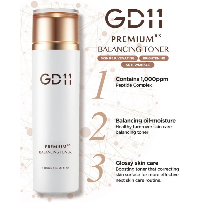 - 🤎 FIRST STEP BOOSTING TONER: GD11 Premium RX Balancing Toner is the first step in achieving a flawless complexion. It helps to balance the oil and moisture levels in your skin, leaving it feeling refreshed, nourished, and ready for the next step in your skincare routine.