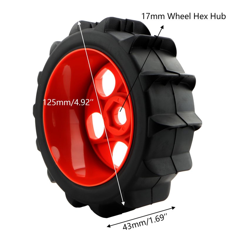- 🔥【RC Tires Dimension】The size of 1/8 RC Paddles Tires Wheels, Outer Diameter: 4.92" (125 mm) | Width: 1.69" (43mm) | Hex Size: 17mm. " Please make sure our RC tires and wheels are the correct sizes you are looking for, to avoid the returns products and save your time due to the inconsistent size.