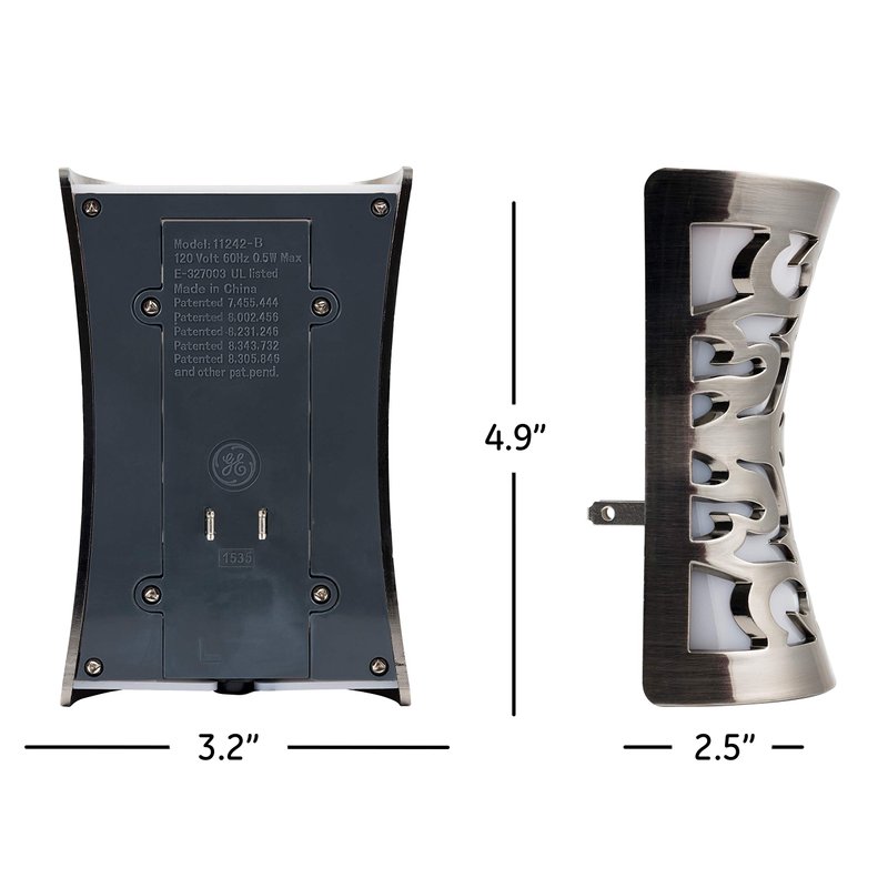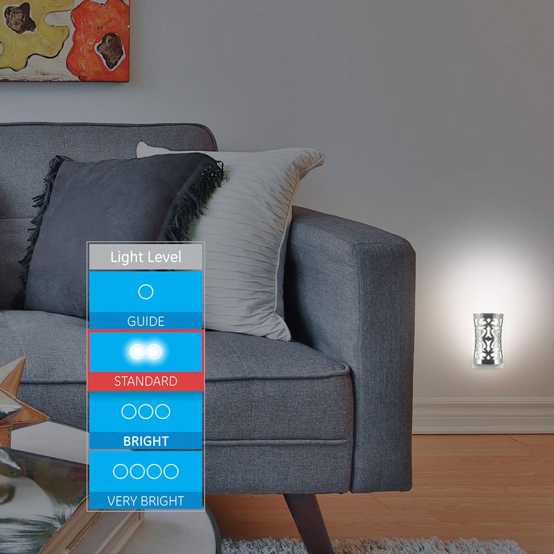 - Decorative Night Light – The modern Cover Lite design plugs into an unused outlet and compliments your home decor with its stylish brushed nickel finish