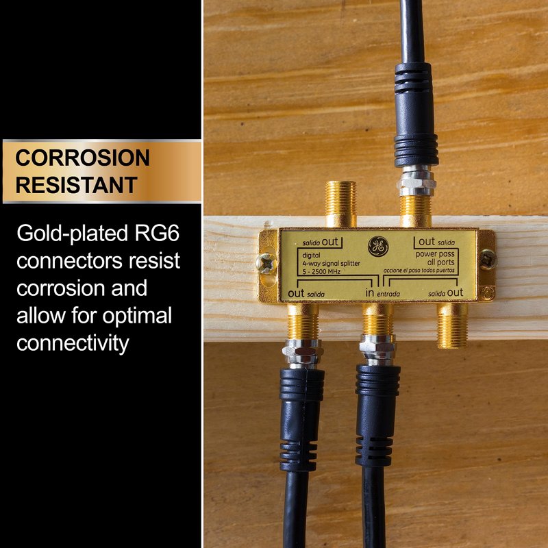 - Corrosion resistant – Gold-plated RG6 connectors resist corrosion, allowing for optimal connectivity and a lifetime of use