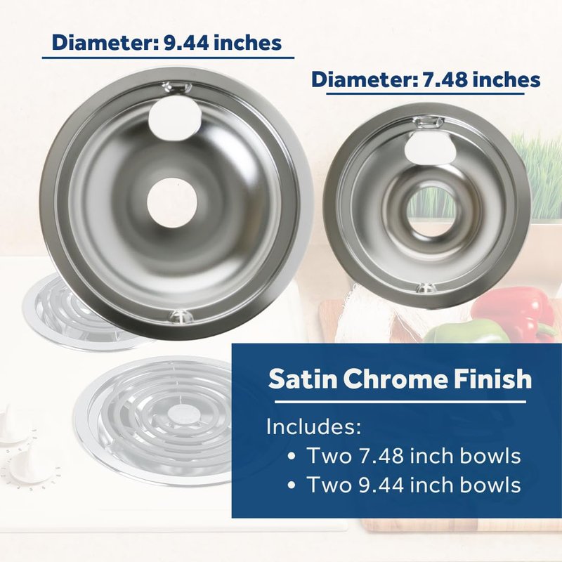 - Replacement GE Appliances Range or Stove 6" and 8" Drip Pan Kit in color of Chrome