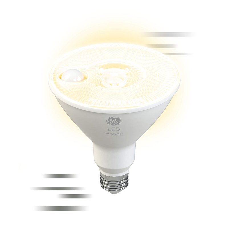 - Easy addition: The GE LED+ motion sensor light bulbs are the same size and shape as PAR38 halogen floodlight bulbs. They can easily replace existing outdoor LED flood lights while offering motion-detecting benefits that will last for several years.