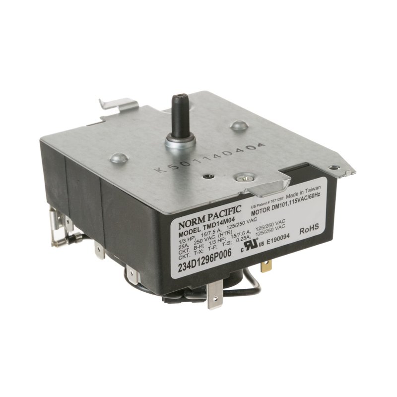 - Timer WE04X20416 controls the electrical components and the duration of the dryer cycles