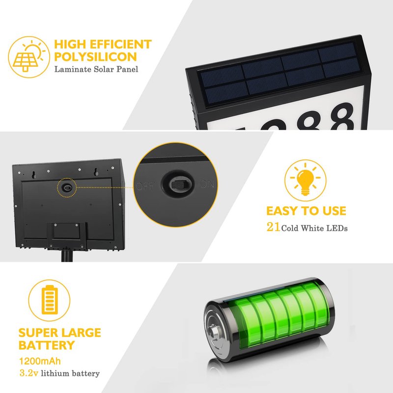 - Easy to Apply: Includes 3 sets of numbers , 1 set of letters, please read the manual and then spend 15 minutes to install this solar house number, no extra time to wait for customization