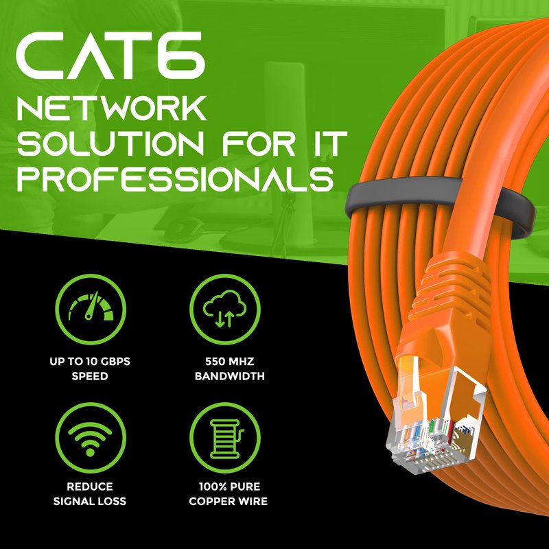 GearIT Cat 6 Ethernet Cable 0.5 ft 6-Inch (24-Pack) - Cat6 Patch Cable, Cat 6 Patch Cable, Cat6 Cable, Cat 6 Cable, Cat6 Ethernet Cable, Network Cable, Internet Cable - Orange 0.5 Foot