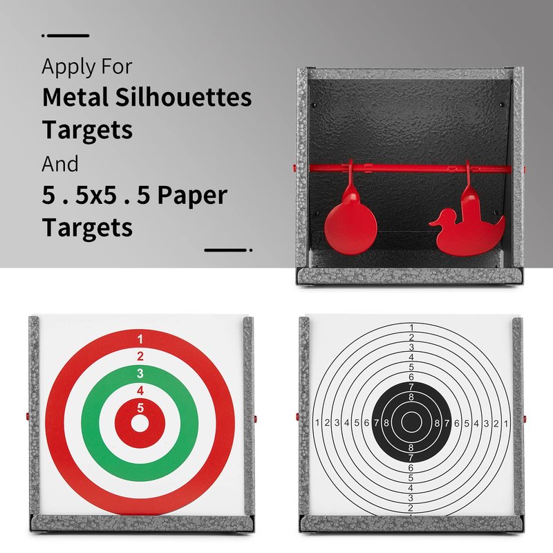 - 🎯 STURDY & DURABLE: Our pellet trap is built with strong metal construction, ensuring its strength and longevity. The design is carefully crafted to withstand the impact of high-powered shots without easily breaking or falling apart. You can rely on the robust build of our bullet box to provide a reliable and consistent target for your shooting practice.