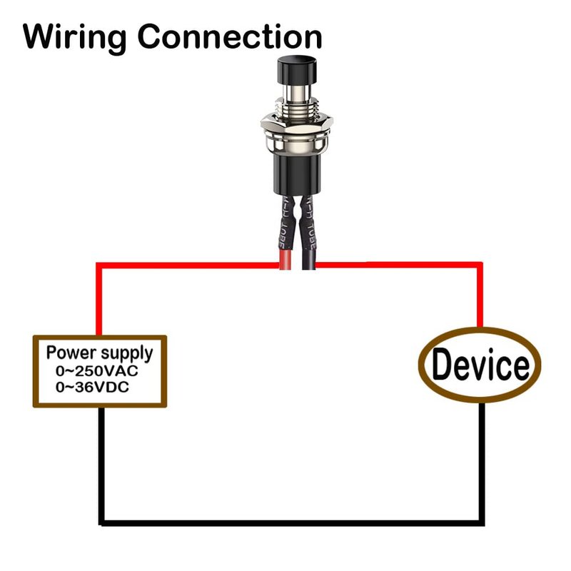 - Operation Type: Momentary; Contact Type: SPST; Rating Voltage: 3V-6V-12V-24V-230V/ 1A; 2 Pin, Nomal Open NO/NC.