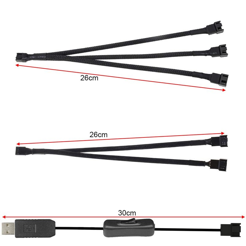 Gebildet 2pcs 12V Step-Up USB to 3-Pin / 4-Pin PWM 5V USB Sleeved Fan Power Adapter Cable with Switch, 2 Way PWM Splitter Cable, 3 Way PWM Splitter Cable