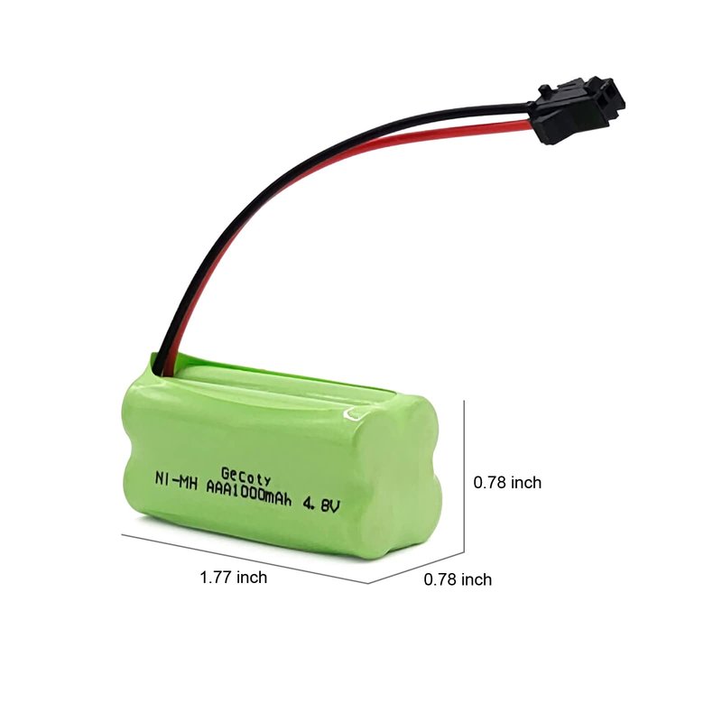 - Package contents: 2 pcs 4.8v 1000mAh nimh rechargeable AAA battery pack.