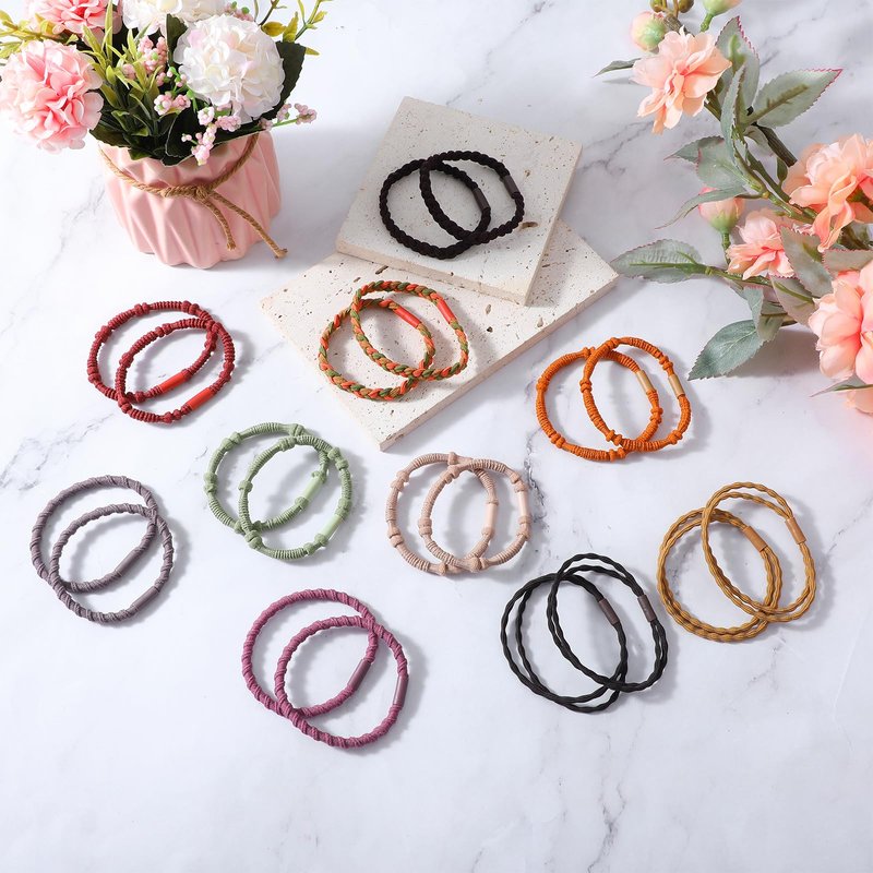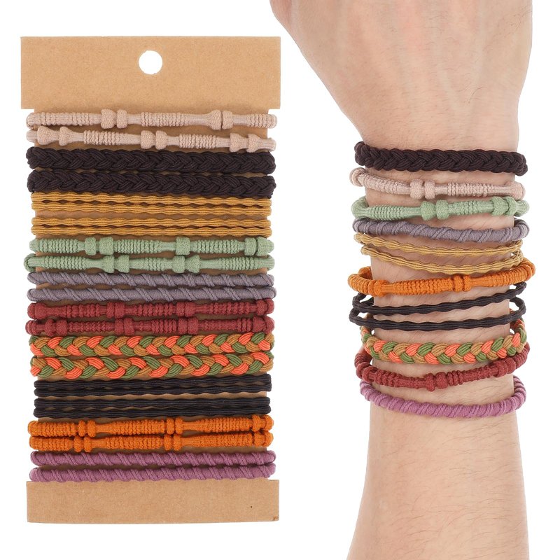 - 20Pcs Bohemian Hair Ties Bracelet: Embrace bohemian charm with our stylish bohemian Boho Hair Ties. With a neutral brown hue, these Boho Hair Ties Bracelets are stylish and simple, perfect for thick and ponytails hairs . Wear them on your wrist to stand out at a beach party. Stack them for a unique jewelry look that will set you apart.