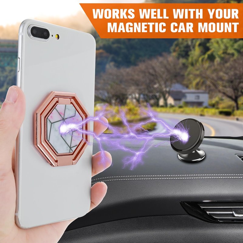 2. Compatible with car mount: Since the ring holder has a built-in metal plate, it can be used with a magnetic car mount. Please note: The magnetic car mount is not included.