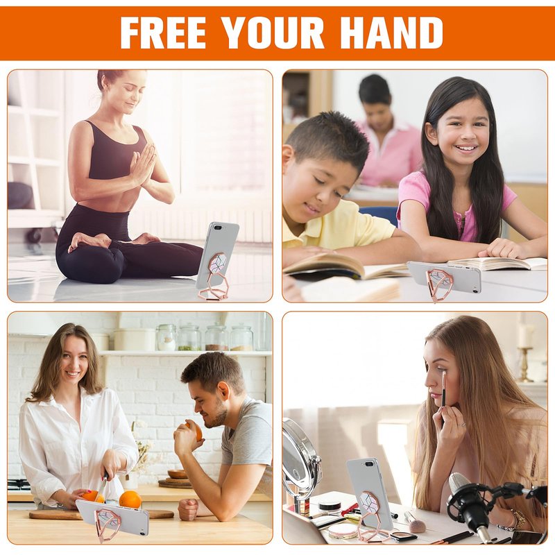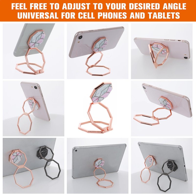 - Versatile Design: Our mobile phone finger ring holder adopts a unique double-folding design, which provides endless possibilities. This versatile holder can be turned into a finger grip when you have something in your hand; it can be transformed into a sturdy desktop stand for your phone or tablet when you are exercising or cooking; what's more, the metal mobile phone finger ring can work perfectly with the car magnetic holder when you are driving.