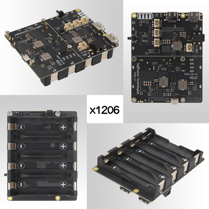 This X1206 is an ultra-compact advanced uninterruptible power supply expansion board designed specifically for the Raspberry Pi 5. It features a 4-cell Lithium 21700 battery holder, supporting up to 10,000mAh (with 4 cell 21700 batteries), with its advanced features and robust power backup capabilities, the X1206 is perfect for even the most demanding Raspberry Pi setups.