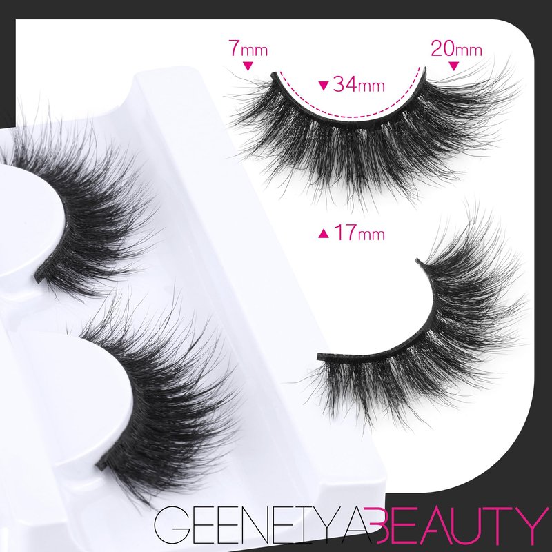 Dramatic 20MM Mink Lashes: Soft matte finish and blackest black color; matte finish blends beautifully with your natural lashes; Handmade mink lashes feature a knot-free lash band and weightless volume; Reusable,flexible, comfortable to wear. Luxury Mink Lashes: 100% handmade and cruelty-free. These lashes mink are perfect for enhancing a dramatic eyelash extension look; D curl fake lashes with beautiful curl and volume for an ultrafine natural look. Long Cat Eye False Eyelashes: Geeneiya lashes can be used for many times if the false eyelashes are used and removed properly, easy to remove by eye makeup remover or tools. Not easy to fall apart with durable lash strip. Only 0.5g & Lightweight: Each pair of mink eyelashes only weigh 0.5 grams, "0" burdens. These fine fibers come from the tails of artificial breeding minks' natural falling hair and are sanitized and dyed before they're packaged as easy-to-install eyelashes.