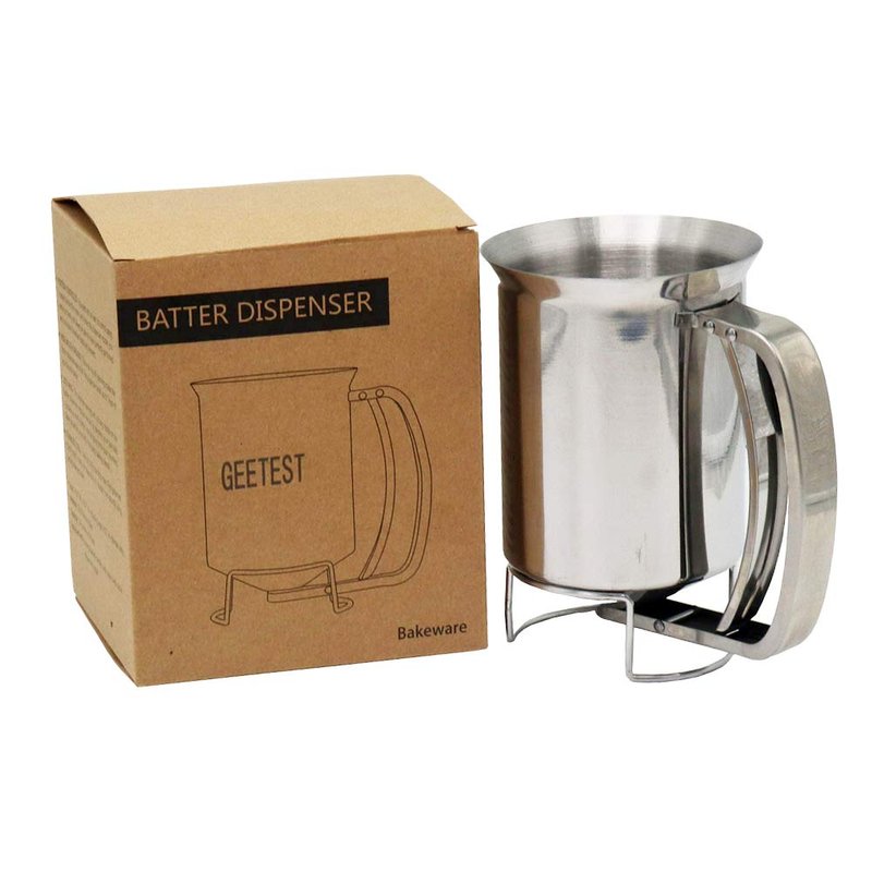 GEETEST 800ml Stainless Steel Pancake Batter Dispenser - Great for Baking,Cupcakes,Muffins-Cooking Crepes,Waffles- Easyflow Spout -Measuring Gauge in Mls and cups