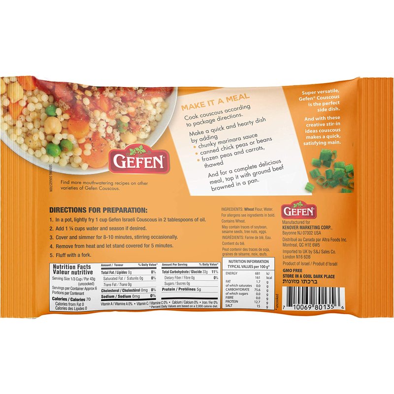 Gefen Israeli Pearl Couscous makes for a great side dish and even a great addition to salad. Gefen couscous is a classic pearl Mediterranean Toasted Pasta that is easy and simple to make.