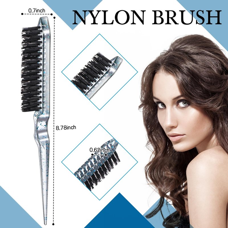 Geiserailie 3 Pcs Slick Back Hair Brush Set Bristle Hair Brush Edge Control Brush Teasing Comb for Women Baby Kids' Black Hair (Clear Blue)