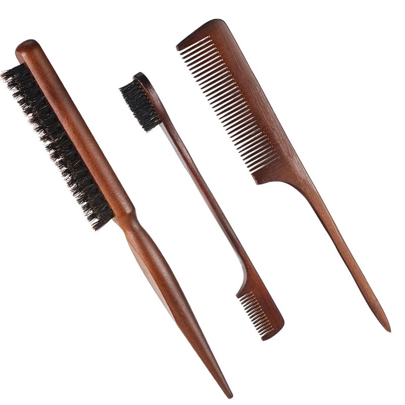 - You're Offered: package includes 3 pcs natural wooden hair edge brush and comb sets, namely 6.9 inches double sides edge brush, 8.78 inches boar bristle brush and 8.6 inches pin tail comb, very good tools for edge hair, baby hair, soft and fine hair