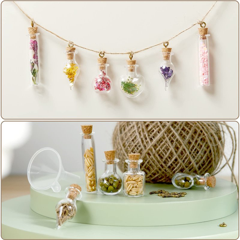 - Wide range of applications: these different shapes of clear cork glass bottles can store pretty beads or put notes with wishes, seeds, and can be applied as necklace pendants, perfume bottles, mini treasure bottles, message bottles, wedding decorations, storage accessories, perfume samples, party favors, and so on