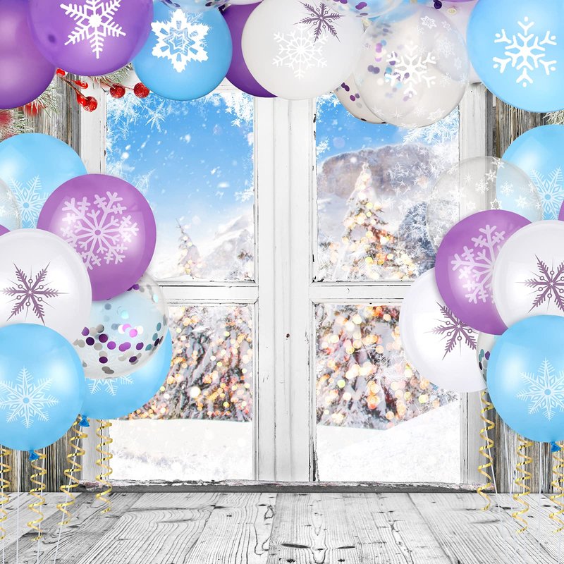 - Dreamy snowflake design: 4 types of winter birthday balloons are printed with different snowflake patterns, and the other type of balloons contain colorful sequins, which are all charming and eye catching; Snow balloons are themed with dreamy purple, white and blue tones, suitable for various winter themed activities