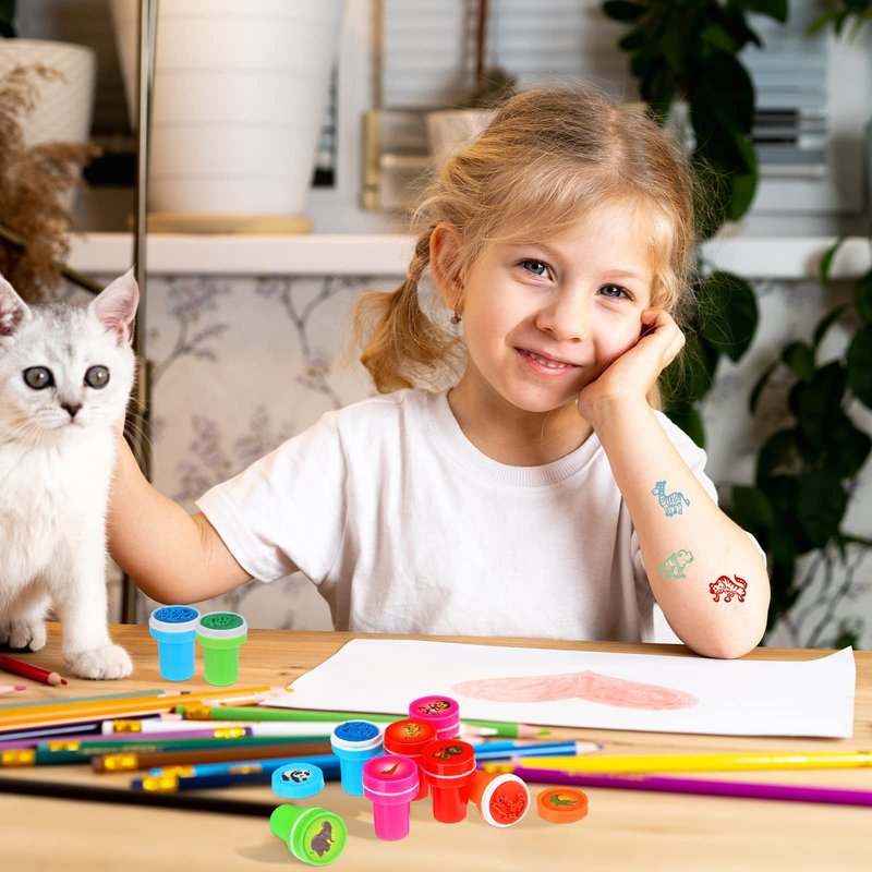 These wild animal stampers come with colored ink built in, so all you need to do is press it down with no more messy fingers or marks on tables, convenient and practical. Remember to cover when you're not using them.