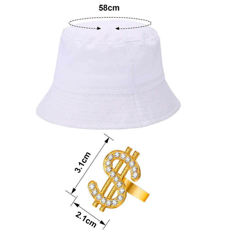 - 80s/90s Party supplies: our hip hop costume kit includes 1 piece white bucket hat, 1 piece rapper glasses, 1 pieces faux gold chain, 1 piece dollar sign ring, funny costume set for your 80s, 90s dress up, you'll be eye-catching in 80s or 90s theme parties. Party supplies.