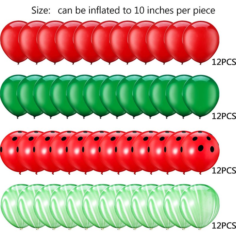 - Package Includes: 48 pieces 10 inches watermelon balloons, 4 colors ( red, dark green, green agate, red polka dot), 12 pieces per color