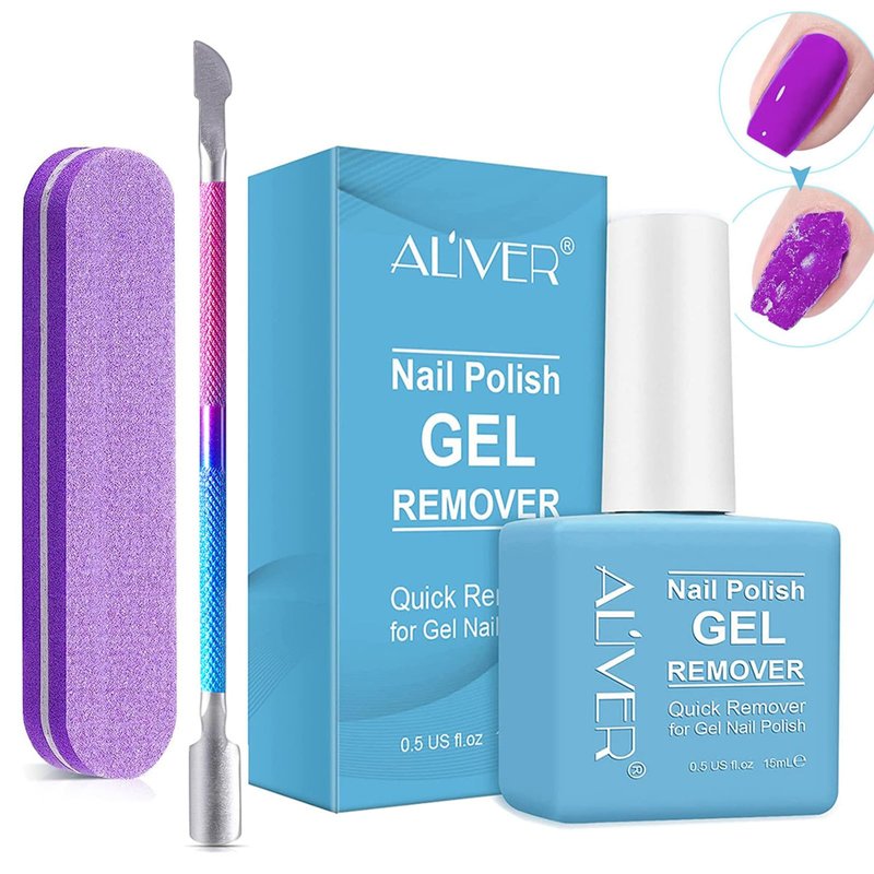 Gel Nail Polish Remover For Nails with Cuticle Pusher & Nail File Buffer, Gel Nail Remover, Quick & Easy Remove Gel Polish In 2-3 Mins, No Soaking or Wrapping