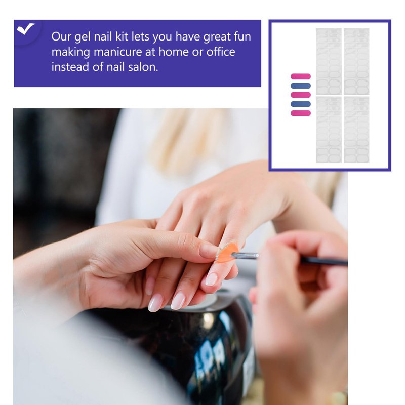 - 【Transparent nail strips】💅💅💅Our gel nail kit lets you have great fun making manicure at home or office instead of nail salon. With the reasonable structure design, gel nail strips are practical and will not take up too much space.