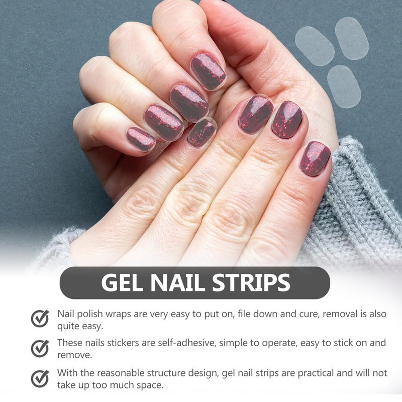 Gel Nail Strips, Specially Designed for Nail Art, Suitable for Various Nail Art Design. Made of Double-Side Glue Material, No Harm to Your Own Nail, Convenient to Use. Suitable for All Kinds of Parties, Such as Parties, Birthday, Holiday Events, And Others.