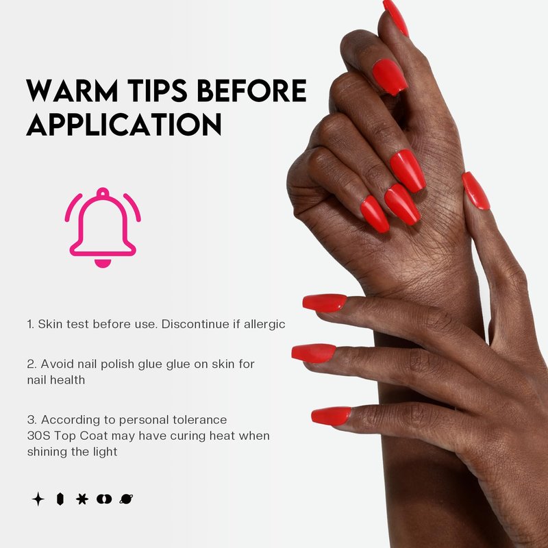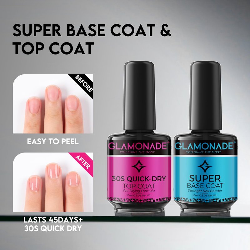 - Warm Tips: Skin test is required before use top and base coat gel polish, if there is any discomfort, please stop using! Avoid nail polish glue glue on skin for nail health. If you encounter any issues while using our gel polish top and base coat set, please feel free to reach out to us directly. We dedicated to assisting you in resolving any problems you may have.