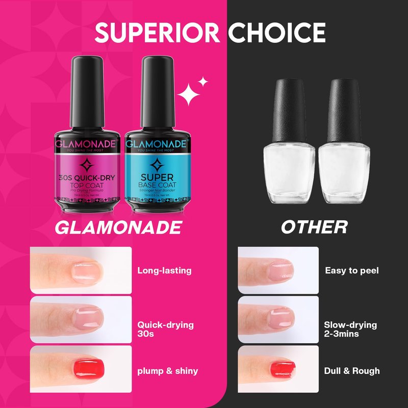 - 30s Quick Drying: Experience swift nail drying with our nail polish top coat, which boasts a fast-acting formula that reduces drying time to just 30s. Clear nail top coat enjoy pristine, smudge-free nails instantly, without the usual wait.