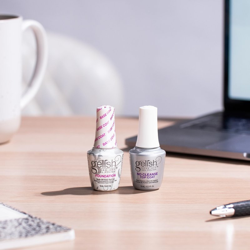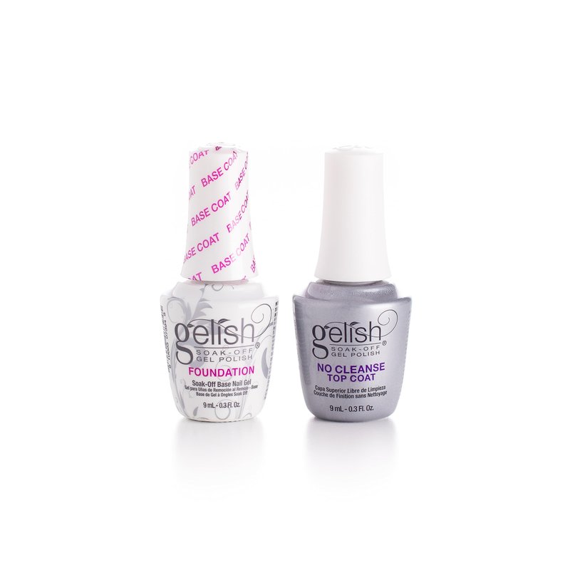 Welcome the Mini No Cleanse Top Coat and Gelish Foundation Base Coat Duo for your gel nail manicure! Gelish Foundation creates the adhesion bond between the nail plate and gel products without damaging the nail plate. LED Cured. This gel provides an adhesive base layer that helps your new color stick and stay on your nails without damaging the nail plate. Gelish Mini No Cleanse Top Coat is a universal top coat that can be used over gel polish and other enhancements. Gelish Mini No Cleanse Top Coat cures in 60 seconds with a high gloss shine and also saves time by skipping cleansing! Removes with Soak-Off Gel Remover for up to 21 days! When utilizing together, you get up to three weeks worth of gel manicure wear!