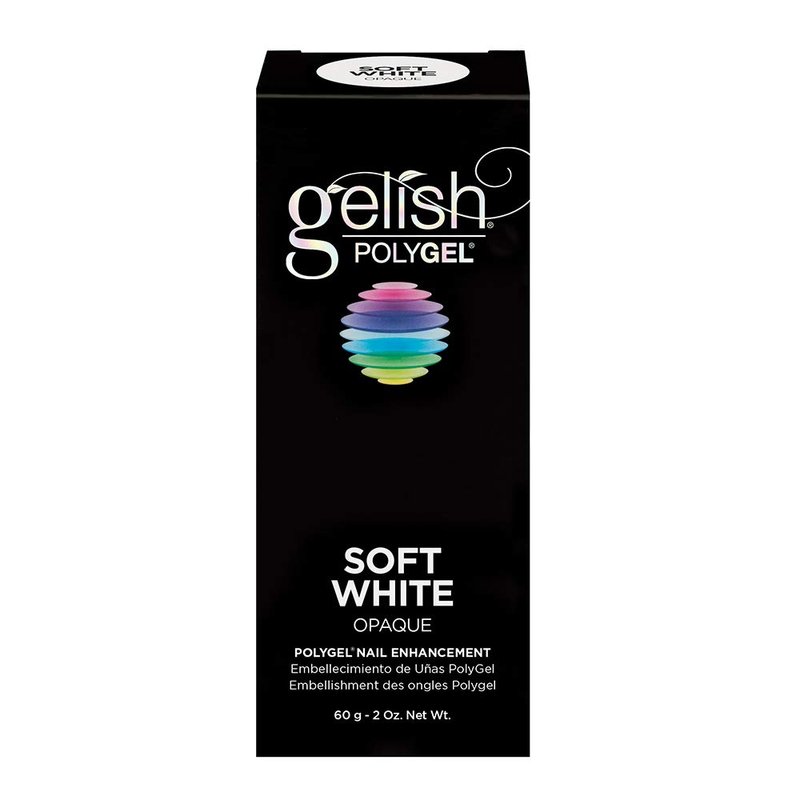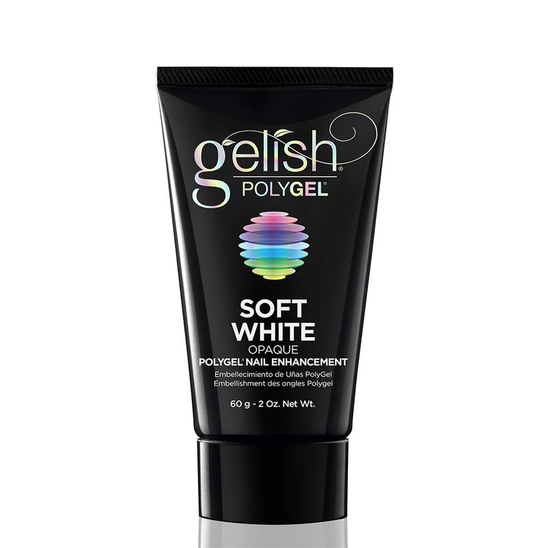 - Gelish PolyGel Soft White Opaque - 60gThe formula is a combination of acrylic and UV gel! PolyGel is strong, lightweight on the nails, flexible, oderless and without airborne dust!