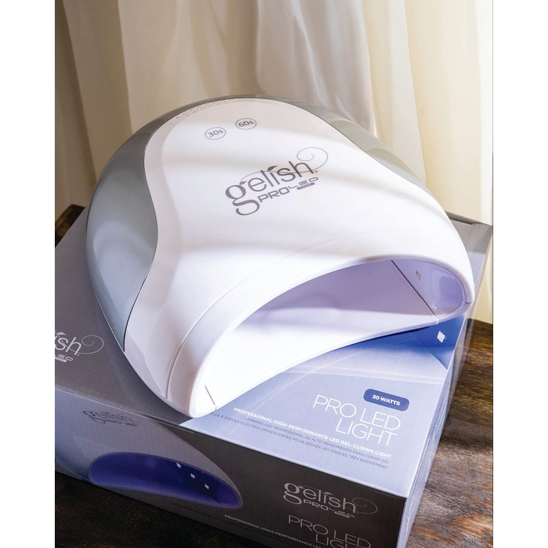 - Gelish Pro LED nail lamp is easy to clean, fast, and powerful with the Gelish curing technology you trust. The Pro LED 30 Watt Light cures all five fingers, or toes with 30 and 60 second cure touch buttons, you won't have to worry about setting a timer with your manicure.