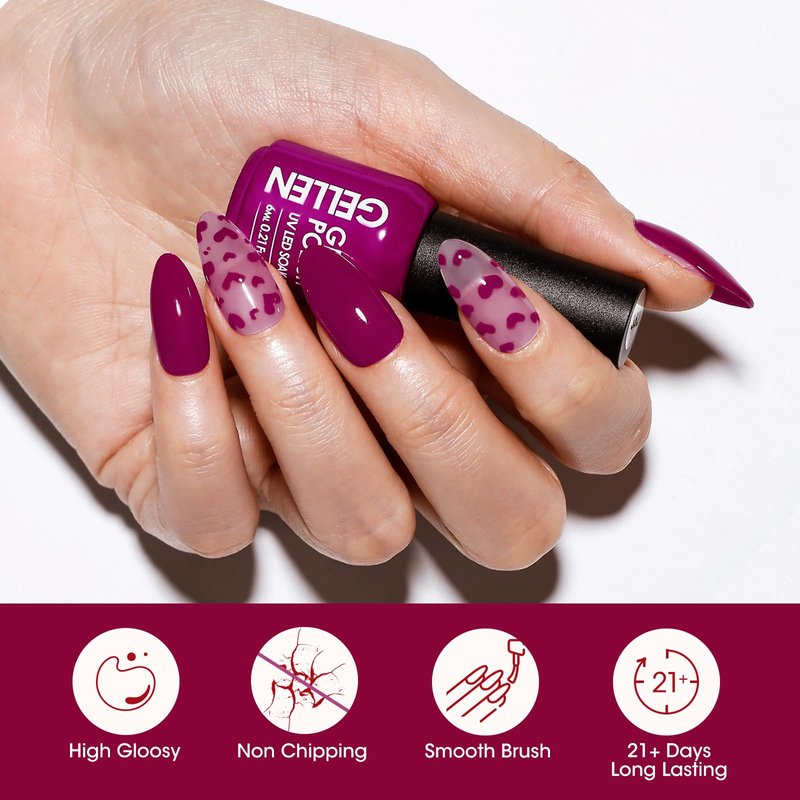 Gellen Purple Burgundy Red Gel Nail Polish Set 6 Colors