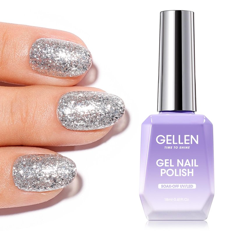 Gellen Gel Nail Polish - 18ml Silver Glitter Gel Polish Soak Off UV Led Nail Polish Manicure Nail Art Salon Home Christmas,0.63 OZ