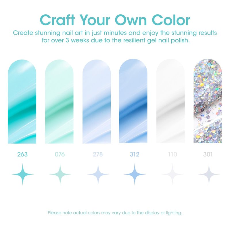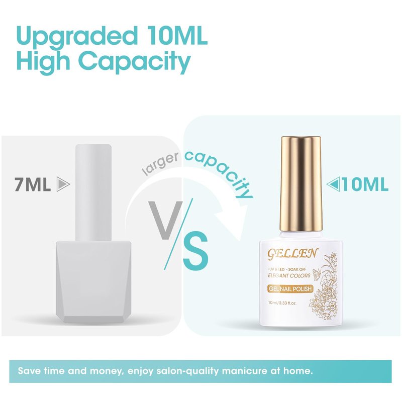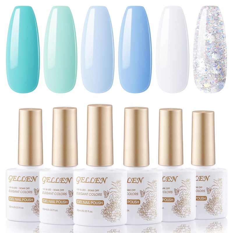 - 🌊 New Trend Gel Nail Polish Set: Gellen Gel Nail Polish Set is perfect for creating a serene and tranquil nail art design with 6 shades of pastel mint blues in summer. These beautiful shade are sure to keep you feeling cool and refreshed even on the hottest days. Let's Indulge in the beauty of our 6-piece Gel Nail Polish Set. A perfectly curated kit including 6 bottles of 10ml (0.33oz) gel polish is an excellent gift idea.