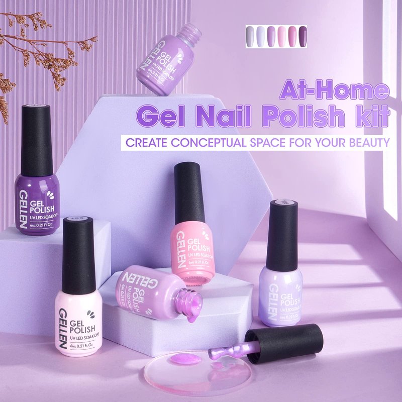 Gellen Gel Nail Polish Kit - 6 Colors Lavenders Series - Violet Lilac Rose Pink Popular Nail Gel Colors Nail Art DIY Home Gel Manicure Set