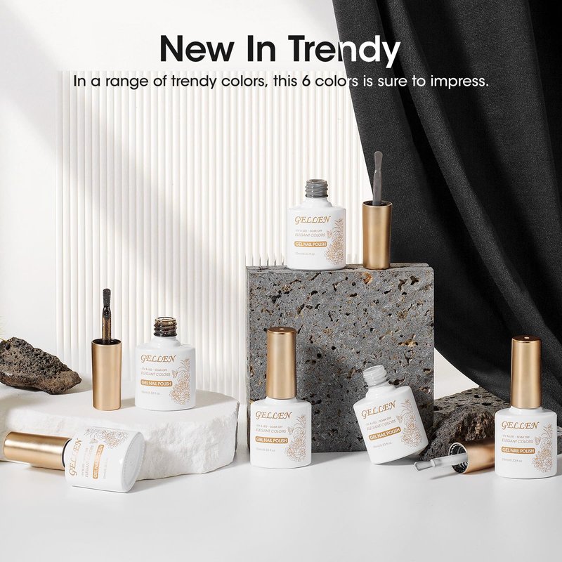 - PACKAGES INCLUDING: Gellen 6 colors gel nail polish, 6 transparent color cards. We studied the 2024 trends to choose the color combinations so that you can show a colorful and fashionable nail every time, we also give you 6 transparent color cards, you can put 6 kinds of nail polish on it, so you can know what color without opening the nail polish.