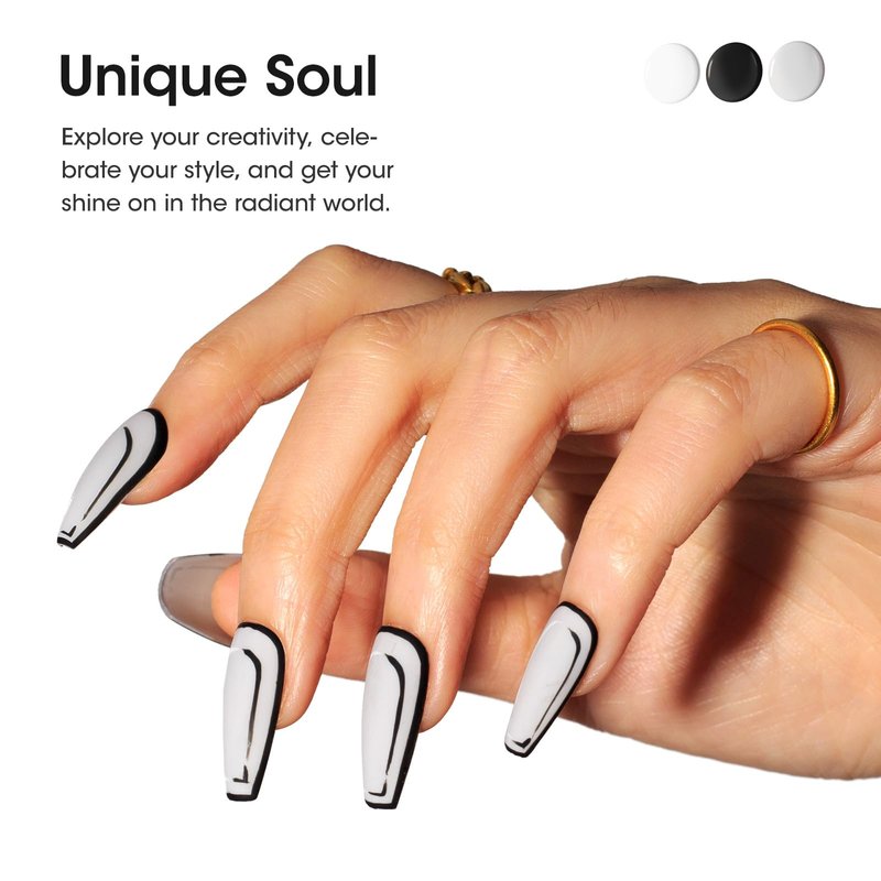 - ENVIRONMENTAL & HEALTHY: Gellen 6pcs white gray black glitter gel nail polish kit are made from Toxin-Free Ingredients which makes it safe and has a low odor.The greenest formula brings you the best nail art experience.