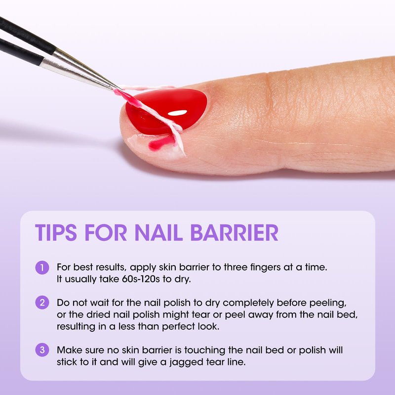 - 【How to Use Gellen Nail Latex Tape?】: This latex nail polish barrier peel off is super easy for use. 1. When you are using the gel nail polish remover, we suggest you apply this latex tape for avoiding a direct touch of your skin & the polish remover, reaching a protective result. 2. You can also apply this liquid latex for nails to areas where you want free of polish. 3. Dry for 1-2 minutes until it turns clear. 4. Rub the edge of latex tape with your finger or tweezers and peel it off.