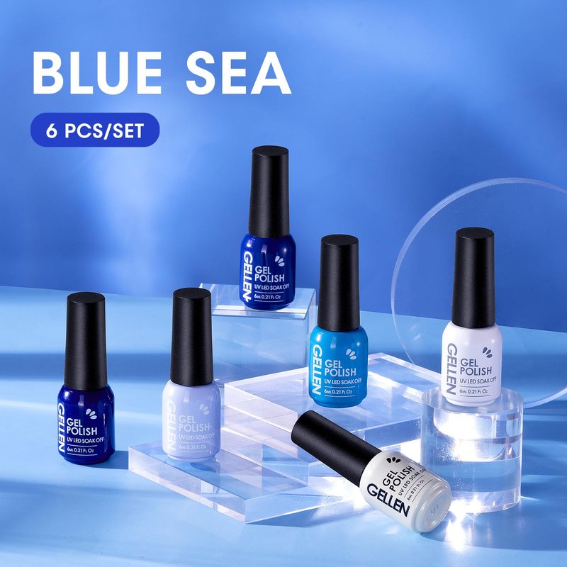 Gellen Gel Nail Polish Set, 6 Colors Blue Gel Polish White Glitter Nail Polish Set, Soak Off UV Gel Summer Gel Polish Set Manicure DIY Home Salon Nail Art