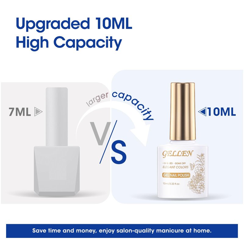 - 💅GLOSSY SHINE & LONG LASTING: gellen gel nail polish set is long lasting for 21+ days with perfect shine under proper application. Gel brushes incredibly smooth, pigmented colors as expected, good tenacity.