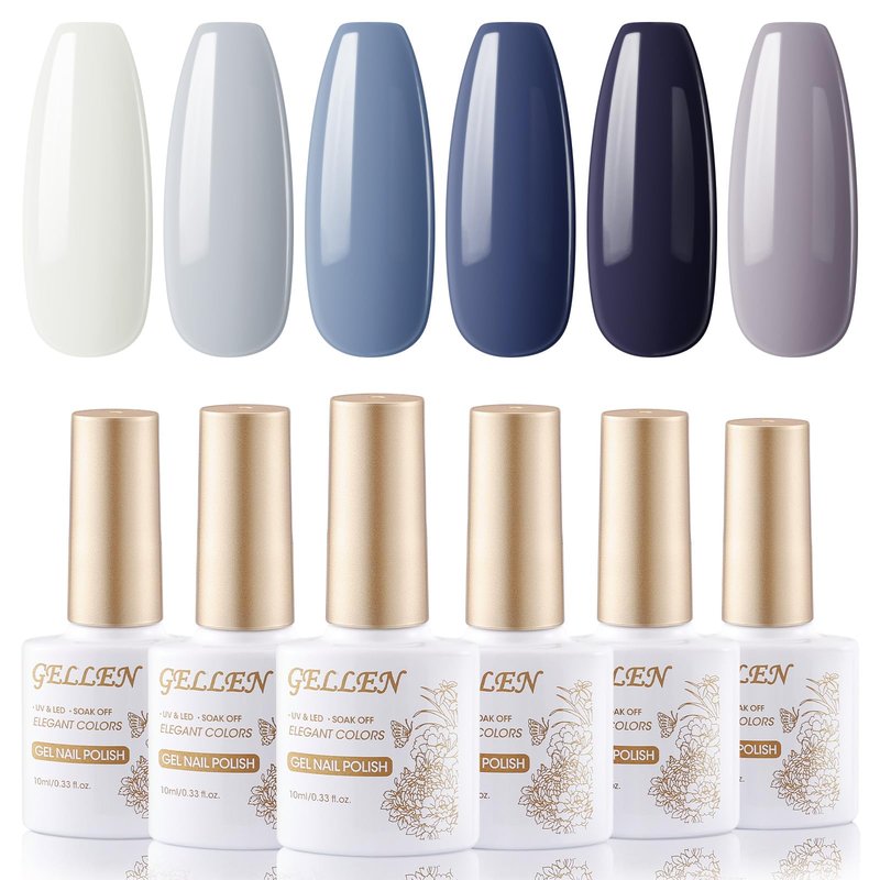 - 💅ENVIRONMENTAL & HEALTHY: Gellen 6pcs blue gray white gel nail polish kit are made from Toxin-Free Ingredients which makes it safe and has a low odor.The greenest formula brings you the best nail art experience.