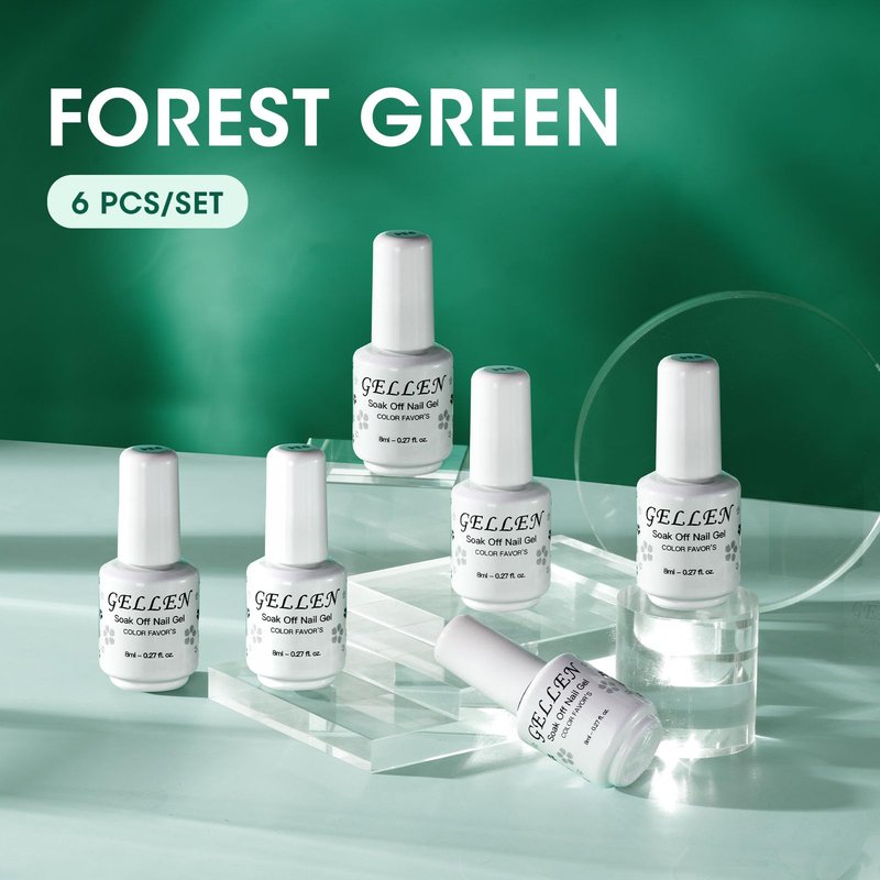 - 【Green Gel Nail Polish】 Gellen 6pcs x 6ml/0.21oz forest deep green gel nail polish set.Suitable for dating,party,festival activities,New Year,Valentine's Day and so on!We hope you can fall in love with our new holiday nail gel sets!